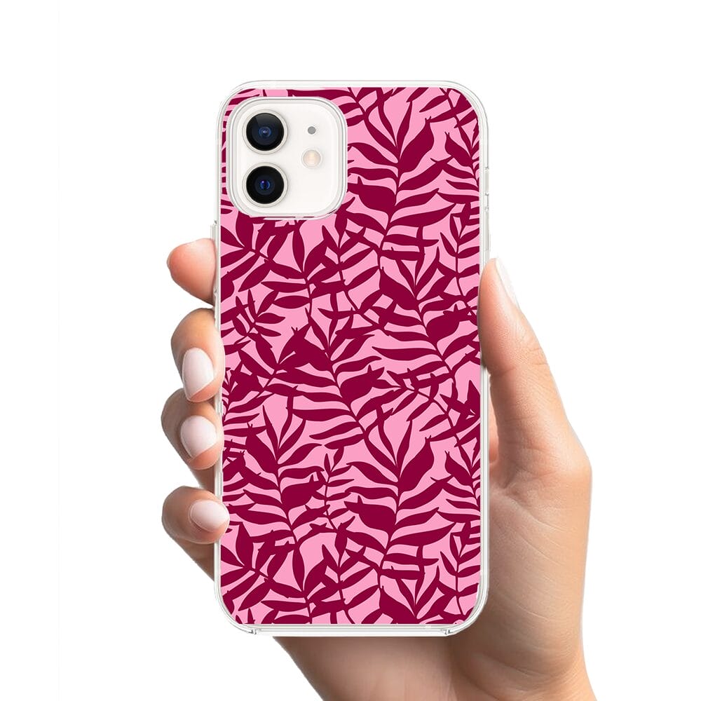 Etui do iPhone 12 Mini przeźroczyste, silikonowe Flexi, bordowe liście