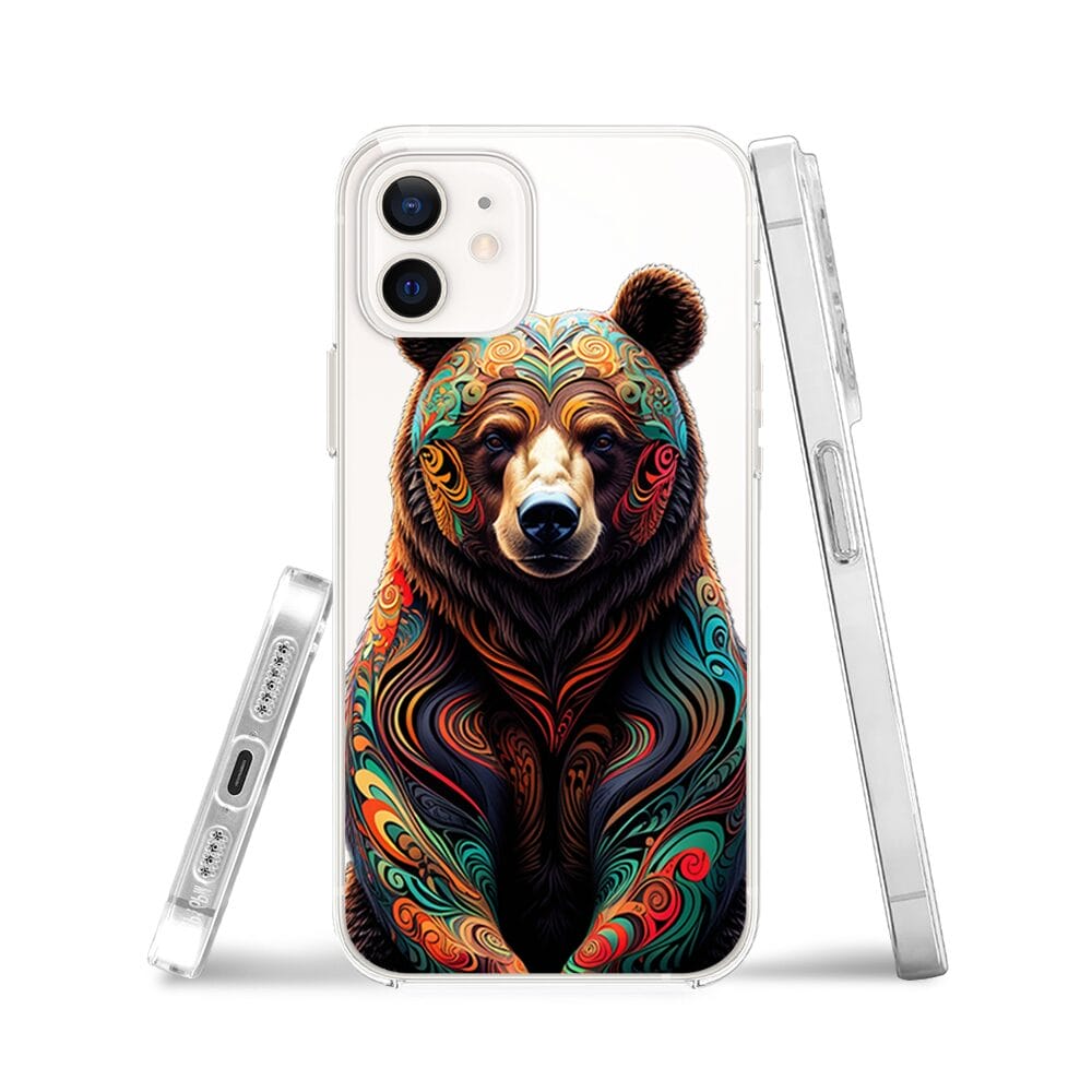 Etui do iPhone 12 Mini przeźroczyste, silikonowe Flexi, Dzika Mandala, Niedźwiedź