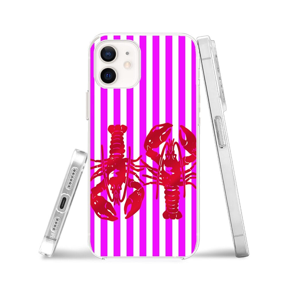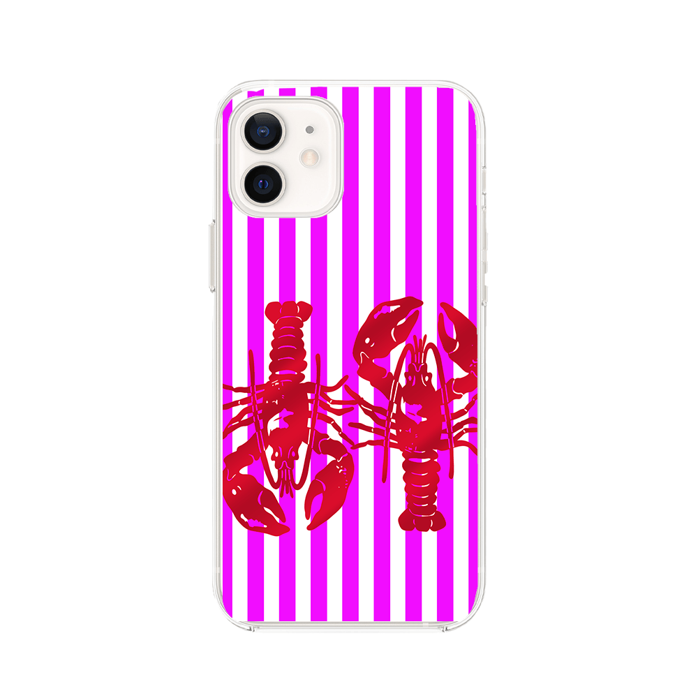 Etui do iPhone 12 Mini przeźroczyste, silikonowe Flexi, kraby z różowymi paskami