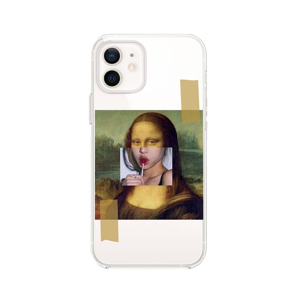 Etui do iPhone 12 Mini przeźroczyste, silikonowe Flexi, Mona Lisa z lizakiem