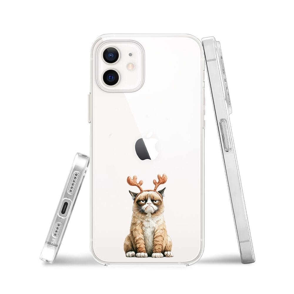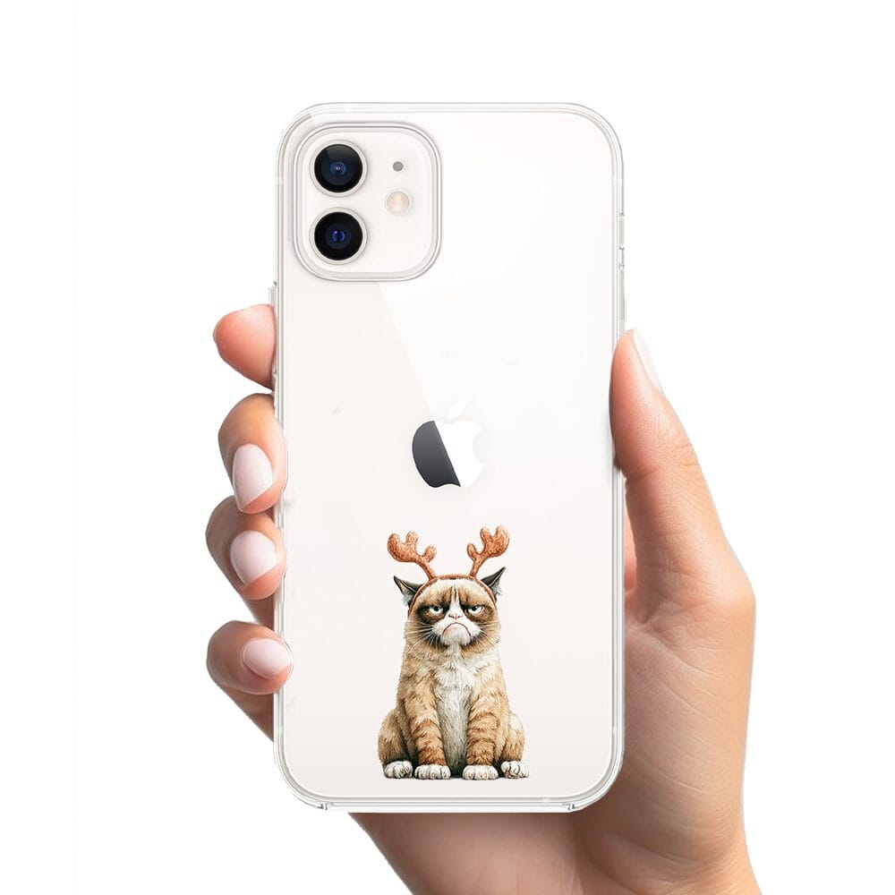 Etui do iPhone 12 Mini przeźroczyste, silikonowe Flexi, Przytulne święta, Kot który nie chciał być reniferem