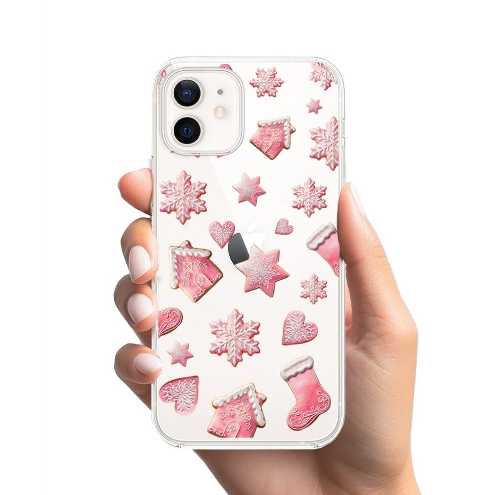 Etui do iPhone 12 Mini przeźroczyste, silikonowe Flexi, Przytulne święta, Różowe pierniczki