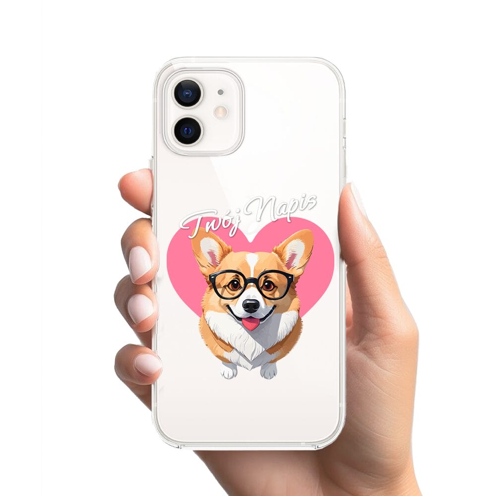 Etui do iPhone 12 Mini przeźroczyste, silikonowe Flexi, Puppy Love, pies rasy Corgi