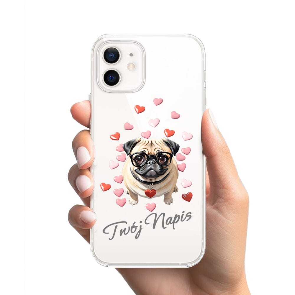 Etui do iPhone 12 Mini przeźroczyste, silikonowe Flexi, Puppy Love, pies rasy Mops