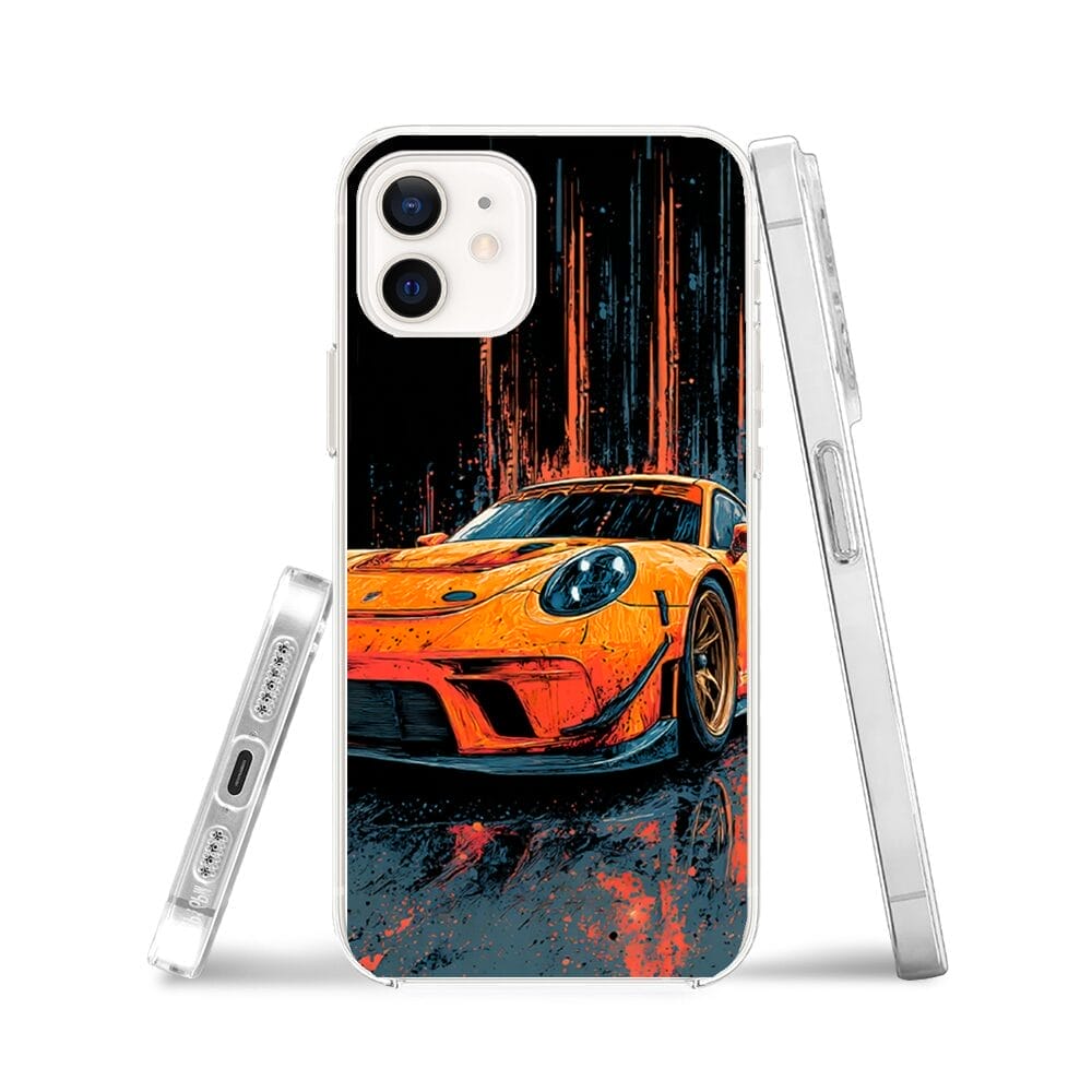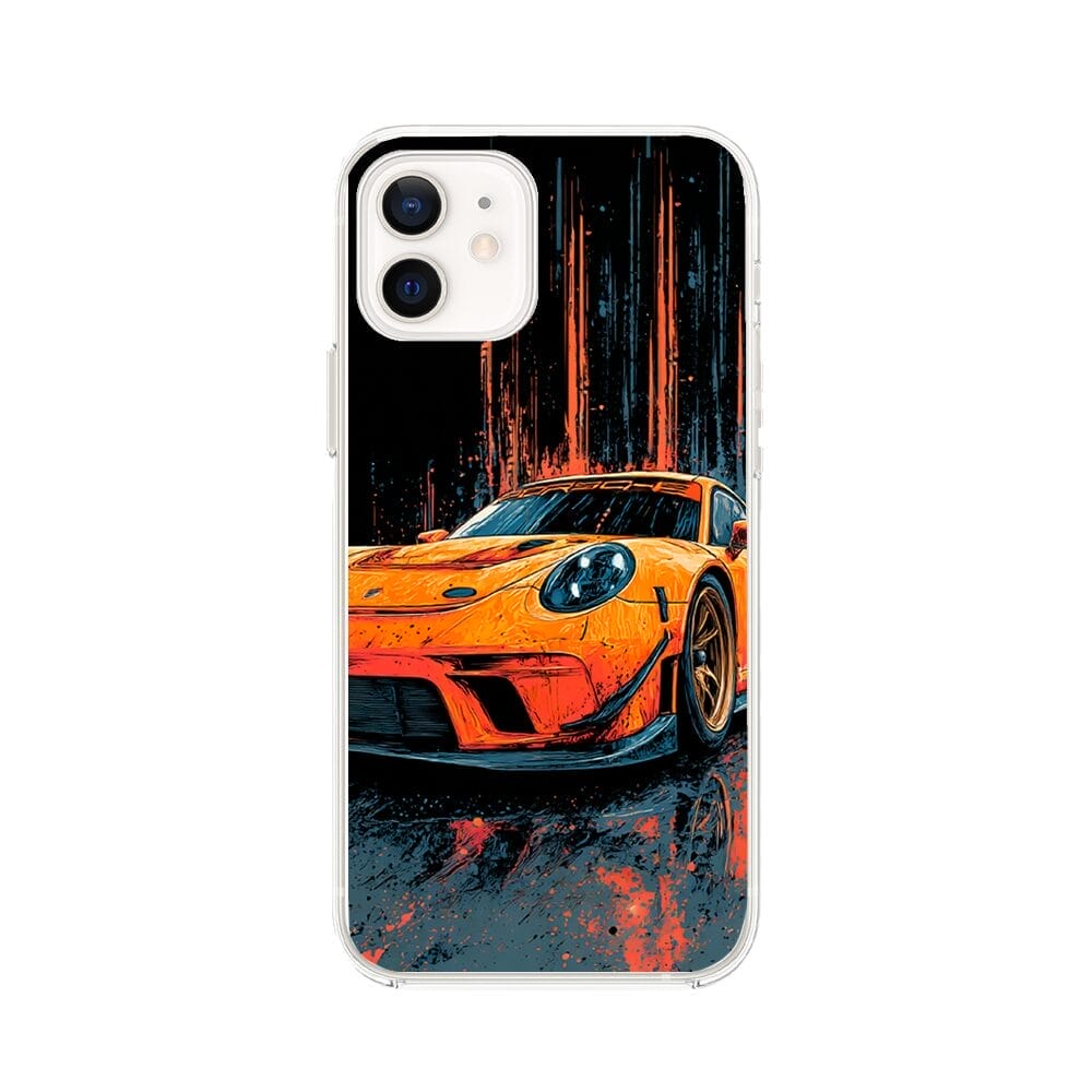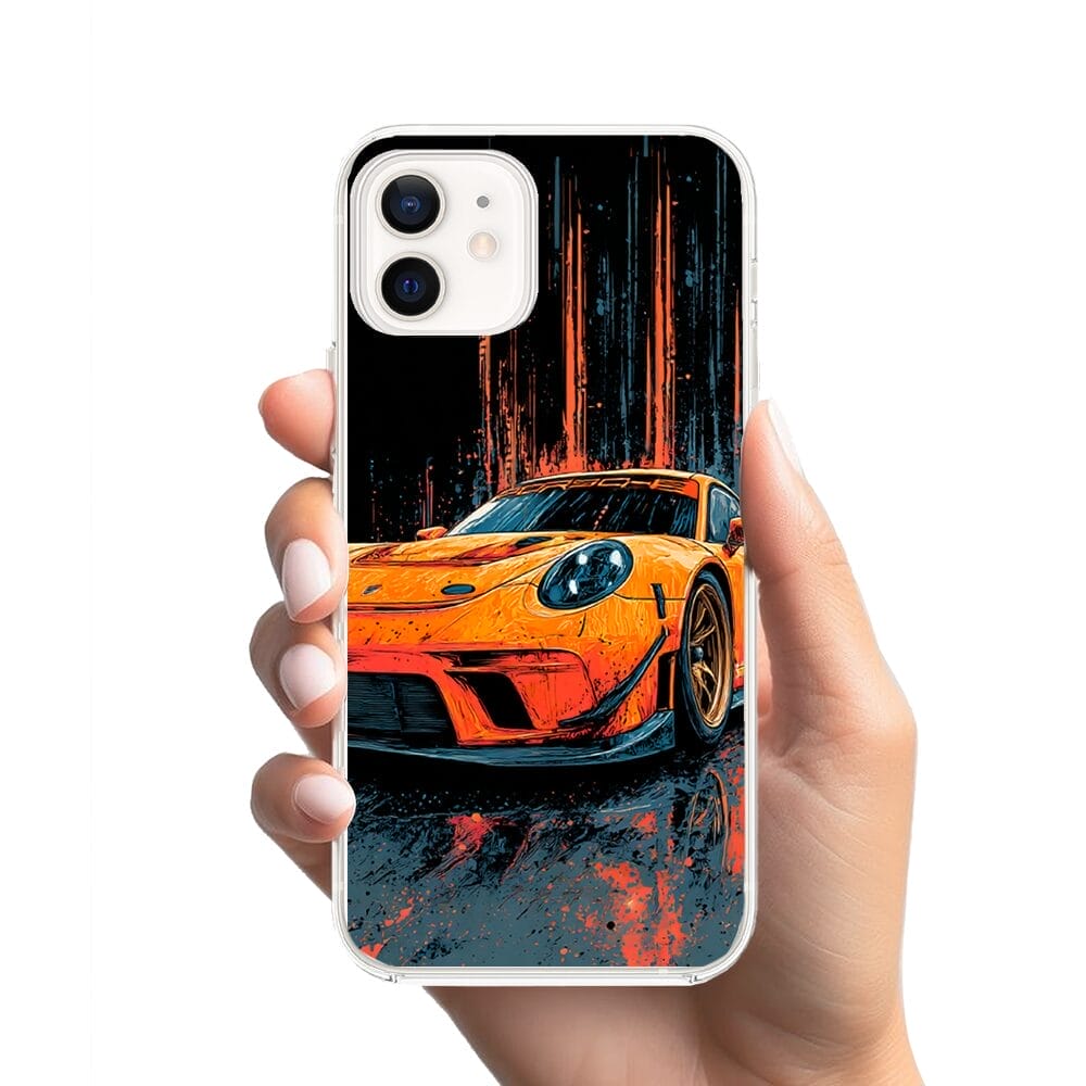 Etui do iPhone 12 Mini przeźroczyste, silikonowe Flexi, Szybkie Auta, Pomarańczowa 911