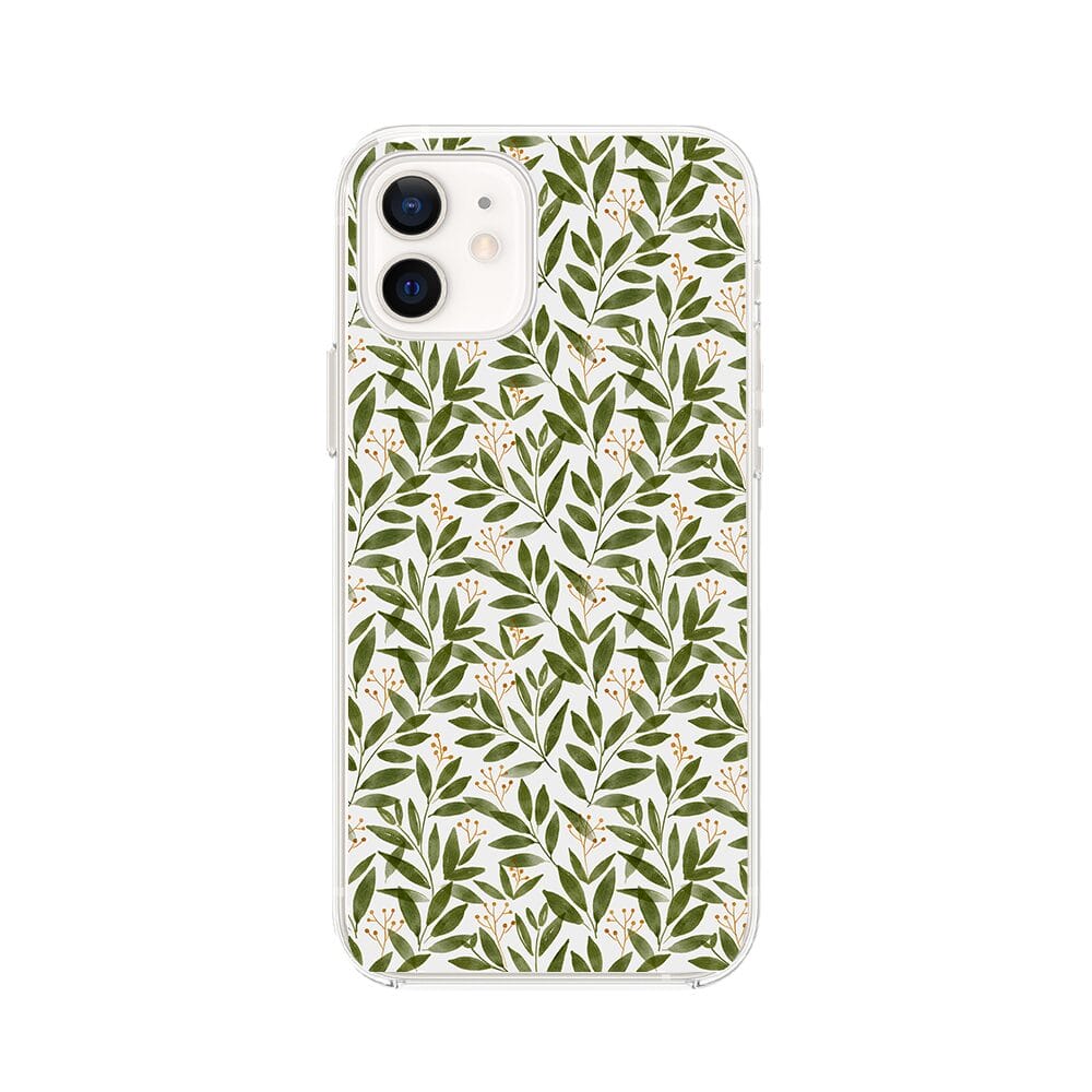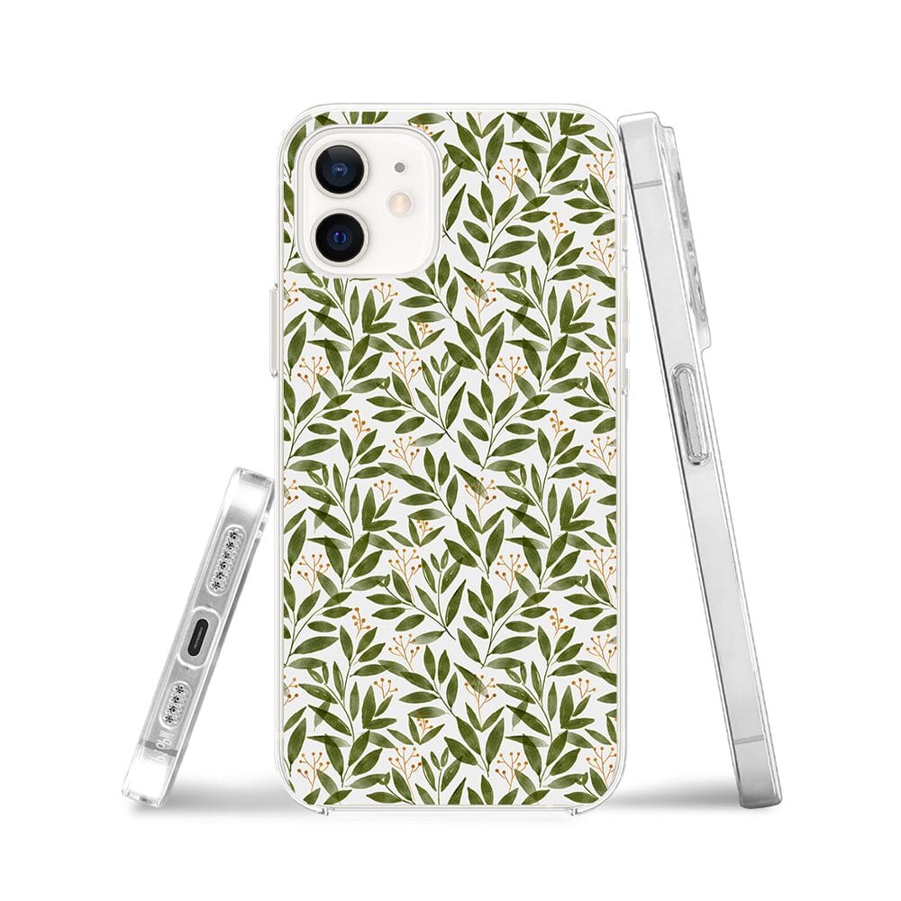 Etui do iPhone 12 Mini przeźroczyste, silikonowe Flexi, zielone gałązki