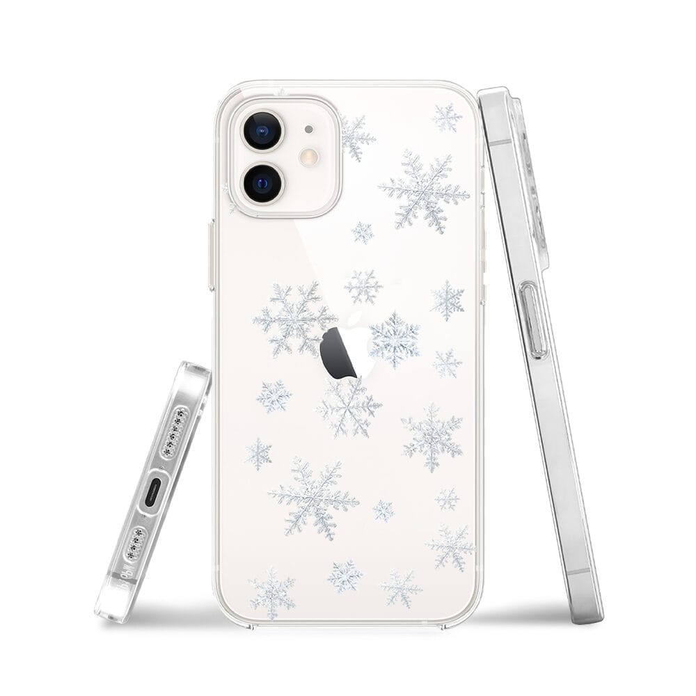 Etui do iPhone 12 Mini przeźroczyste, silikonowe Flexi, Zimowa magia, Delikatne płatki śniegu