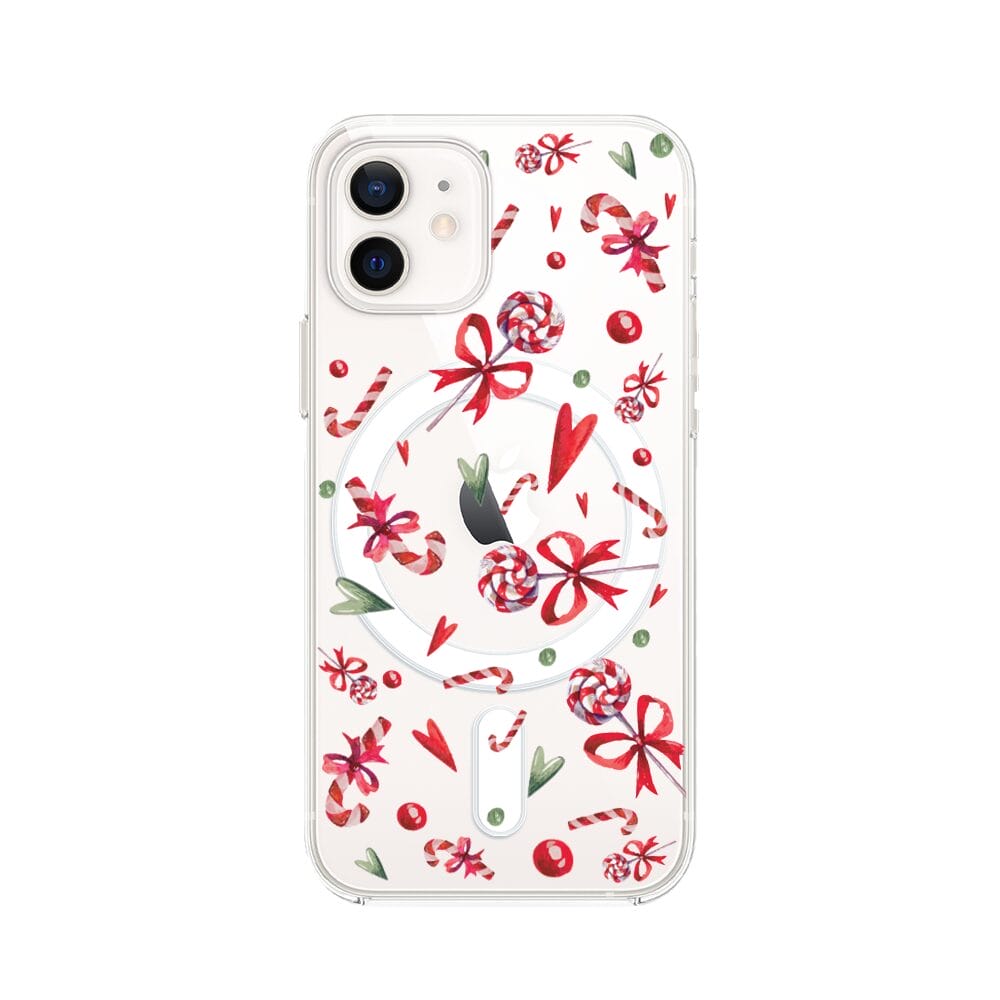 Etui do iPhone 12 Mini z MagSafe przeźroczyste, silikonowe Flexi, Cukierki świąteczne