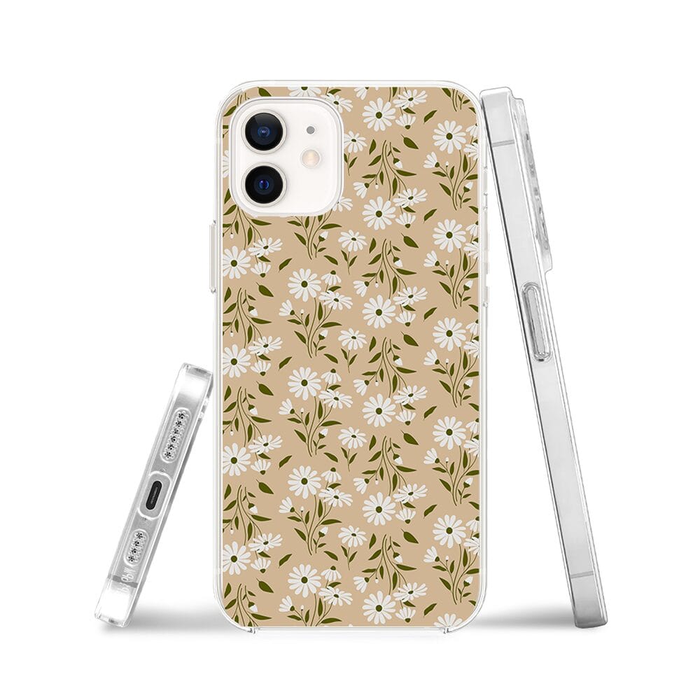 Etui do iPhone 12 Mini z MagSafe przeźroczyste, silikonowe Flexi, delikatne kwiatki na cielistym tle