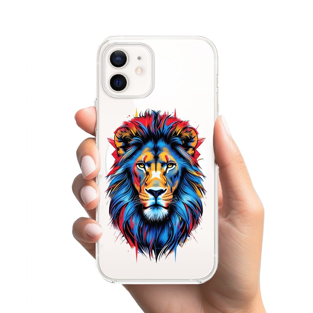 Etui do iPhone 12 Mini z MagSafe przeźroczyste, silikonowe Flexi, Dzika Mandala, Lew