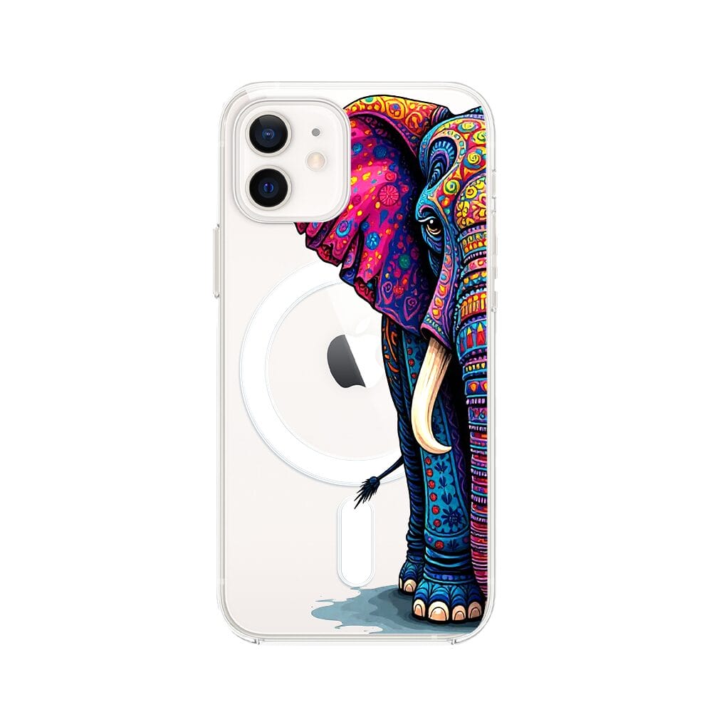 Etui do iPhone 12 Mini z MagSafe przeźroczyste, silikonowe Flexi, Dzika Mandala, Słoń