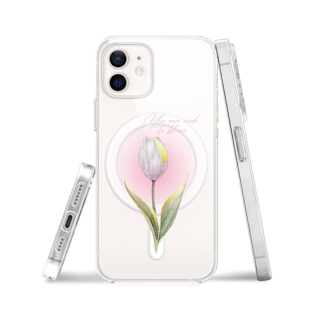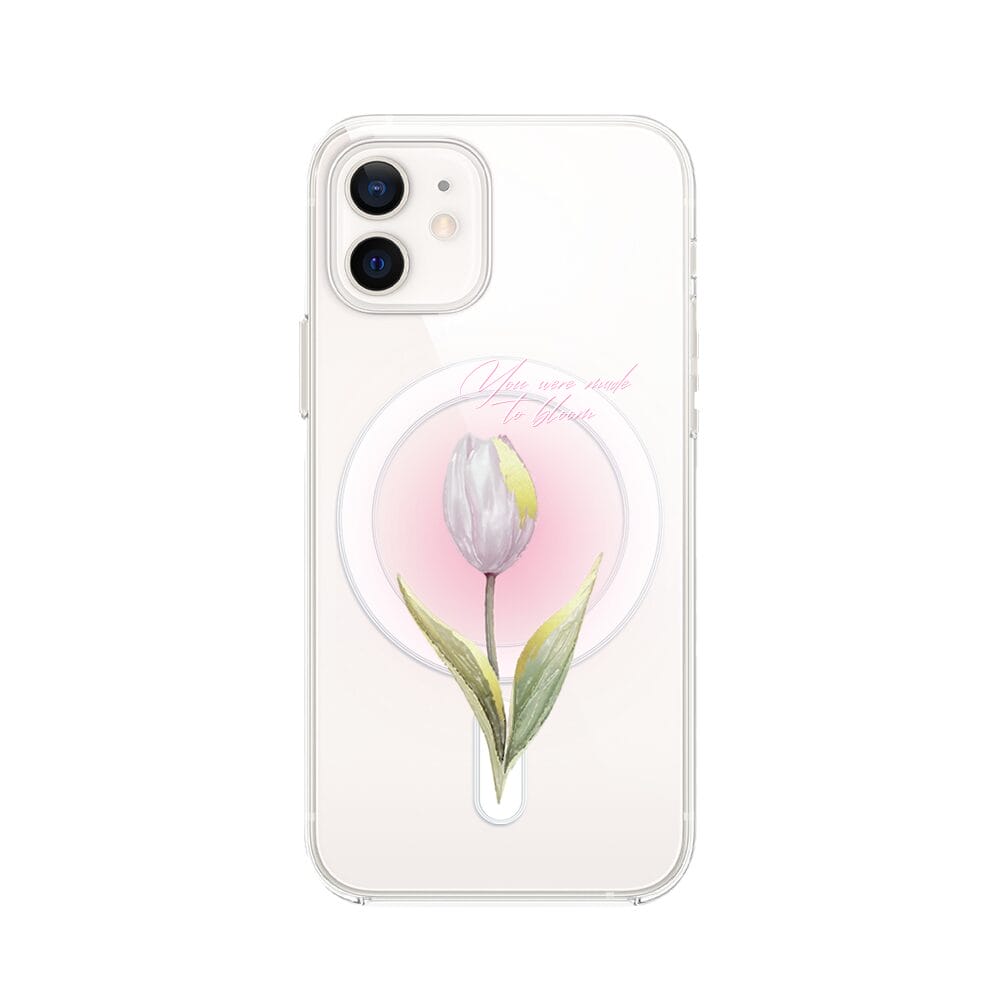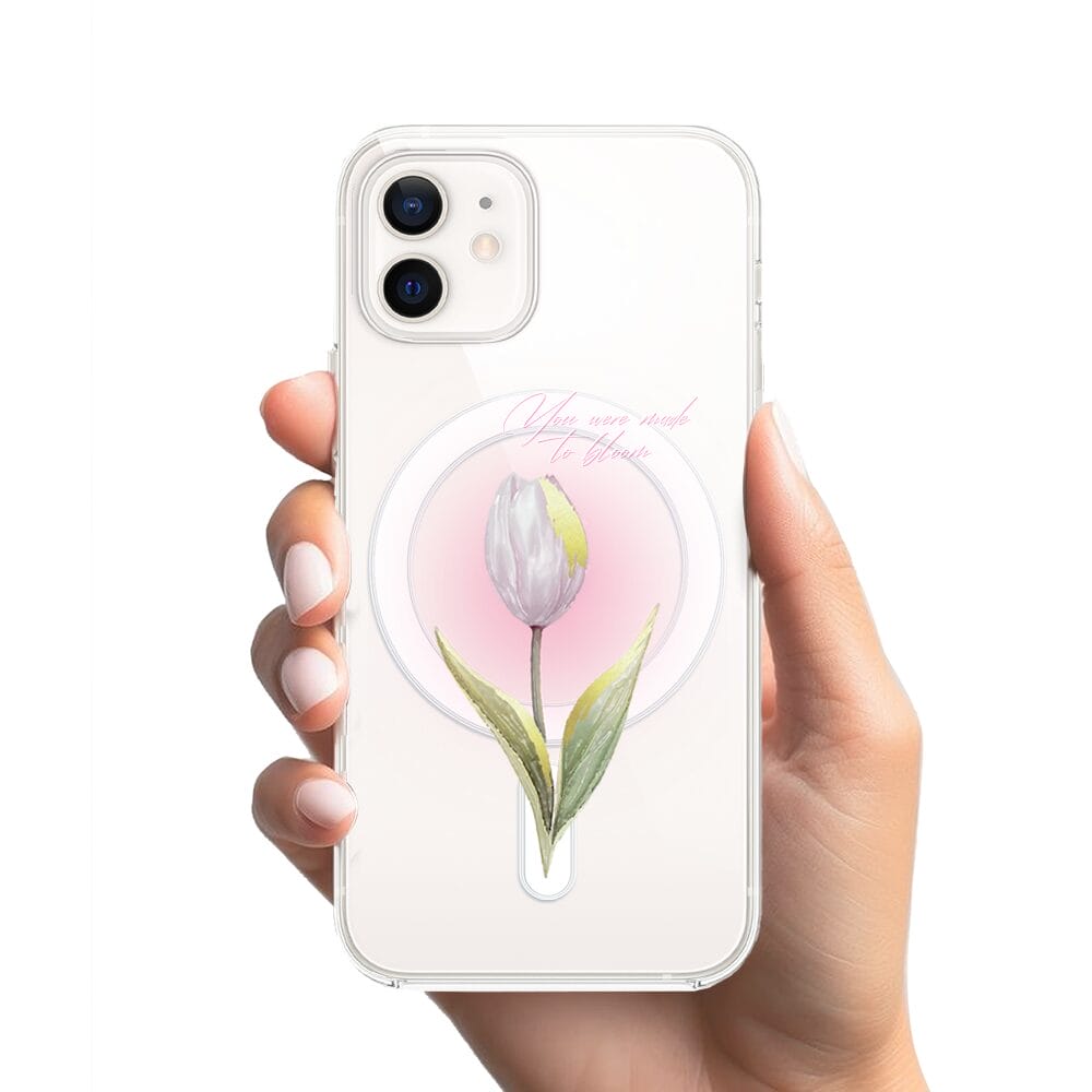 Etui do iPhone 12 Mini z MagSafe przeźroczyste, silikonowe Flexi, kwiaty, tulipan