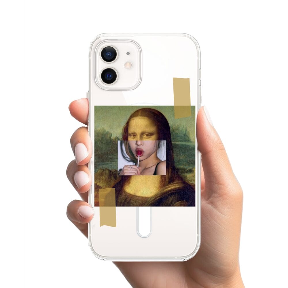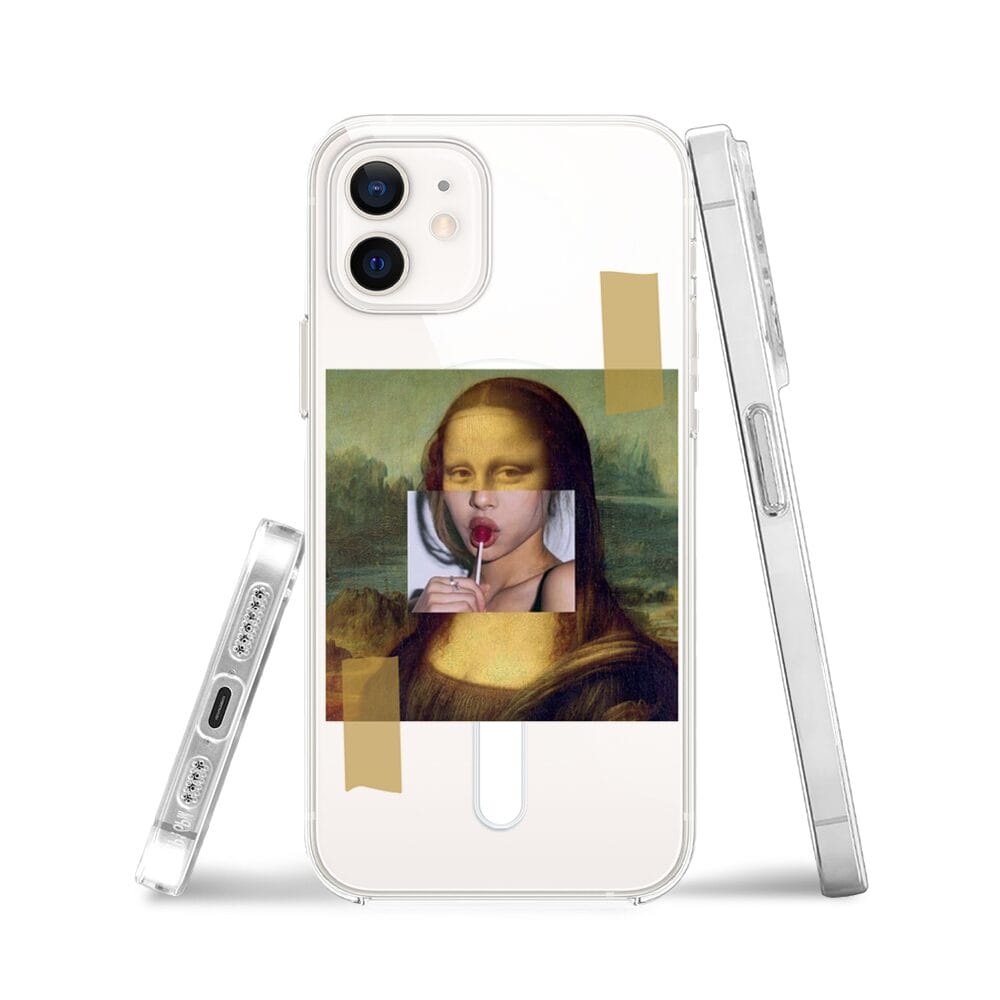 Etui do iPhone 12 Mini z MagSafe przeźroczyste, silikonowe Flexi, Mona Lisa z lizakiem