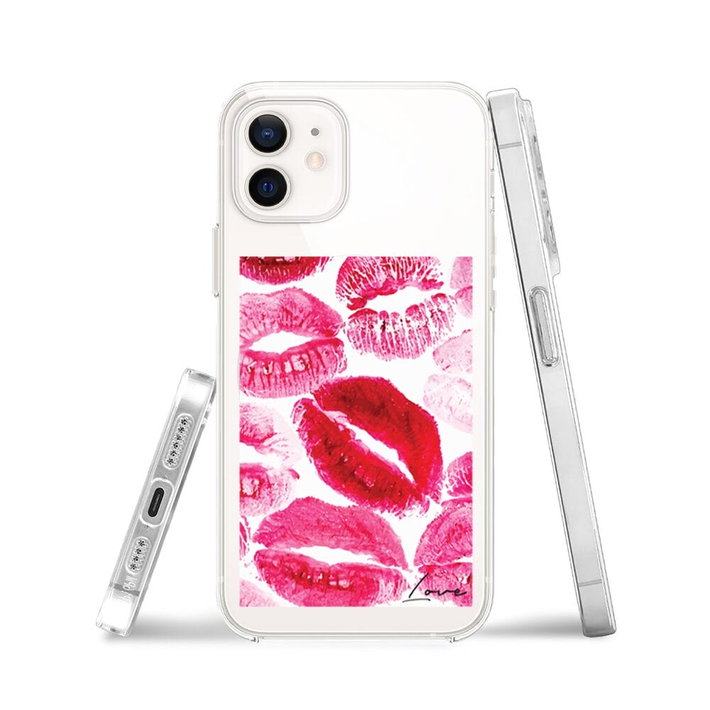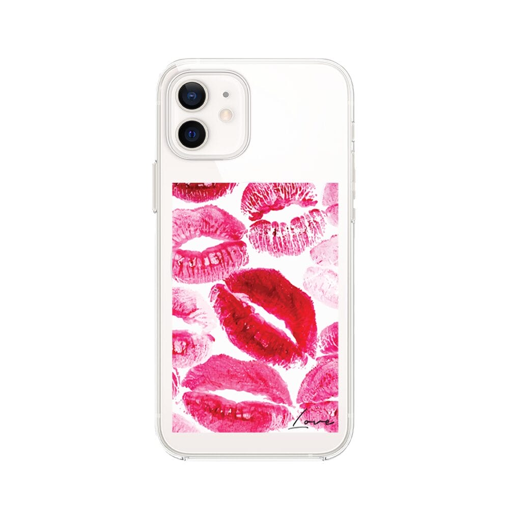 Etui do iPhone 12 Mini z MagSafe przeźroczyste, silikonowe Flexi, pocałunki z napisem „love”
