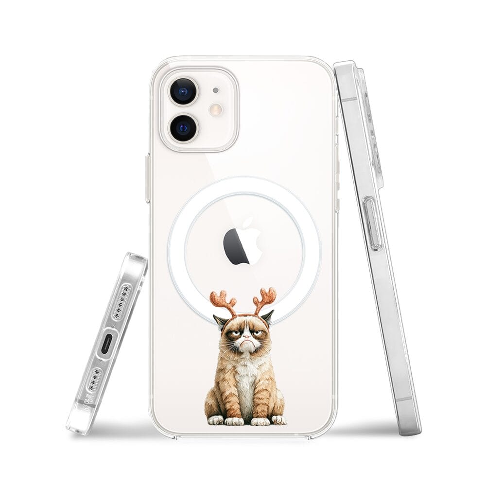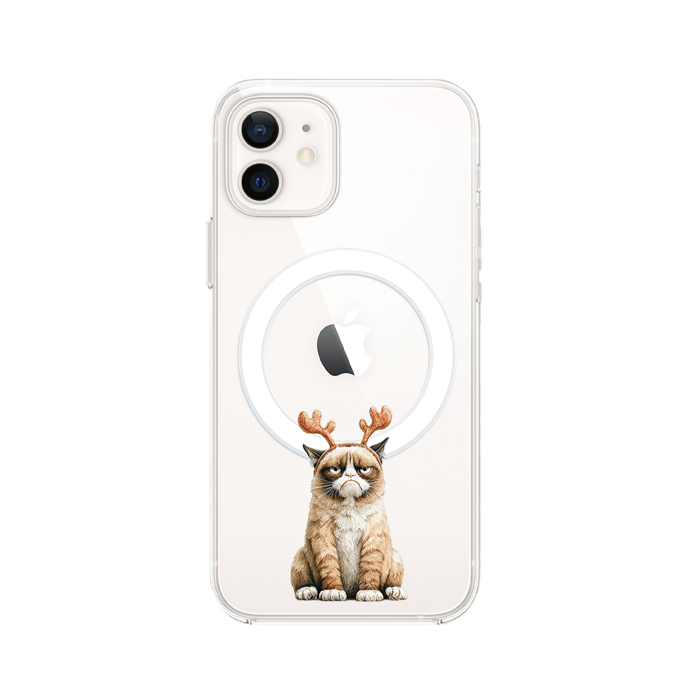 Etui do iPhone 12 Mini z MagSafe przeźroczyste, silikonowe Flexi, Przytulne święta, Kot który nie chciał być reniferem