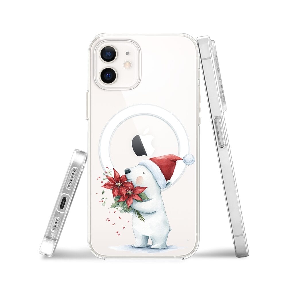 Etui do iPhone 12 Mini z MagSafe przeźroczyste, silikonowe Flexi, Przytulne święta, Miś świąteczny