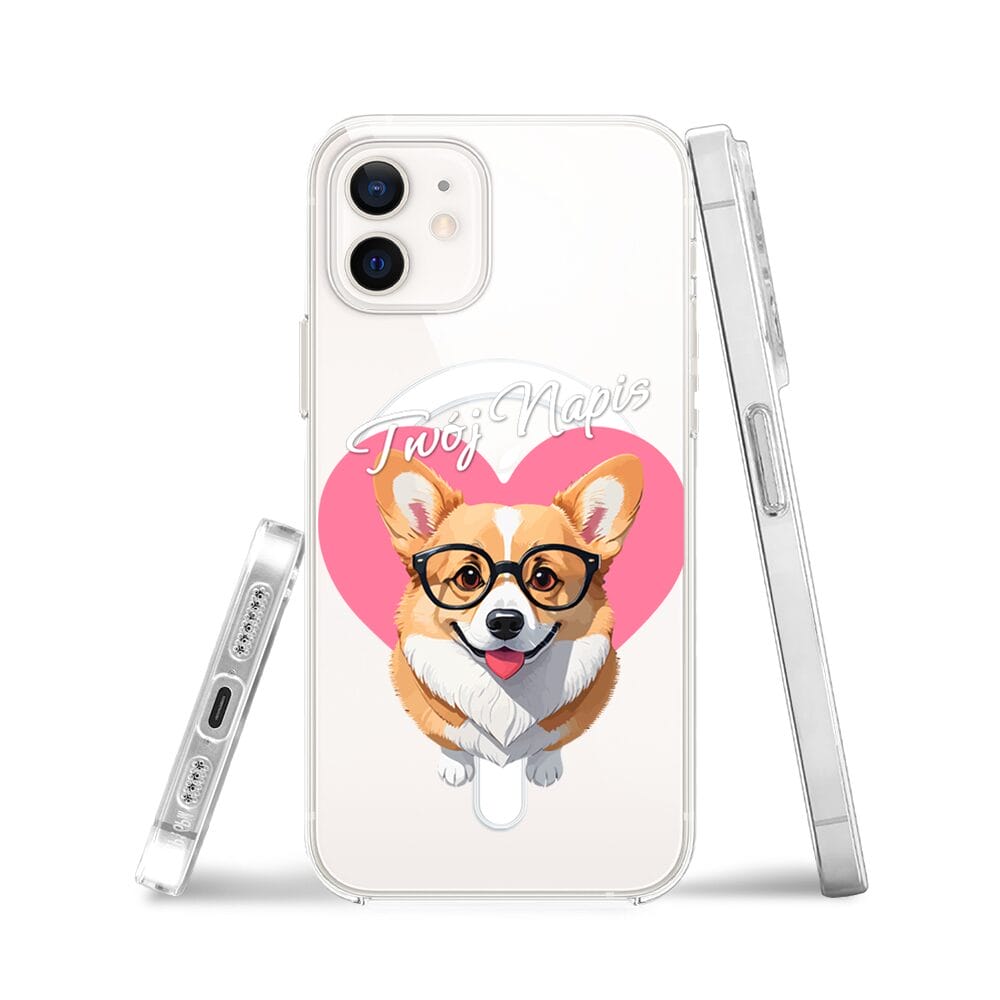 Etui do iPhone 12 Mini z MagSafe przeźroczyste, silikonowe Flexi, Puppy Love, pies rasy Corgi