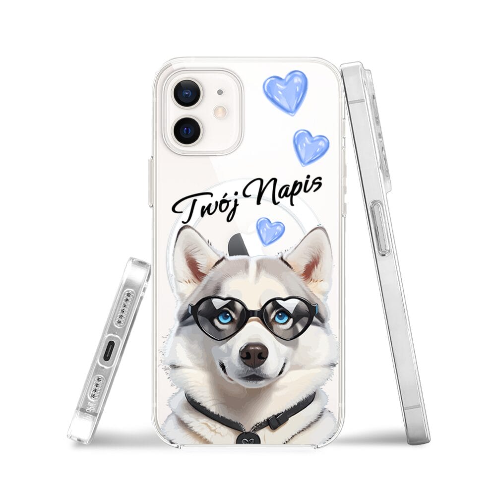 Etui do iPhone 12 Mini z MagSafe przeźroczyste, silikonowe Flexi, Puppy Love, pies rasy Husky