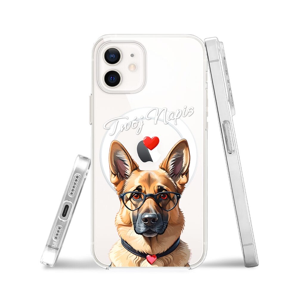 Etui do iPhone 12 Mini z MagSafe przeźroczyste, silikonowe Flexi, Puppy Love, pies rasy Owczarek Niemiecki