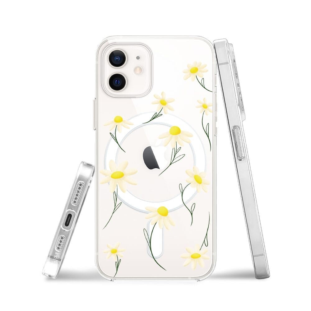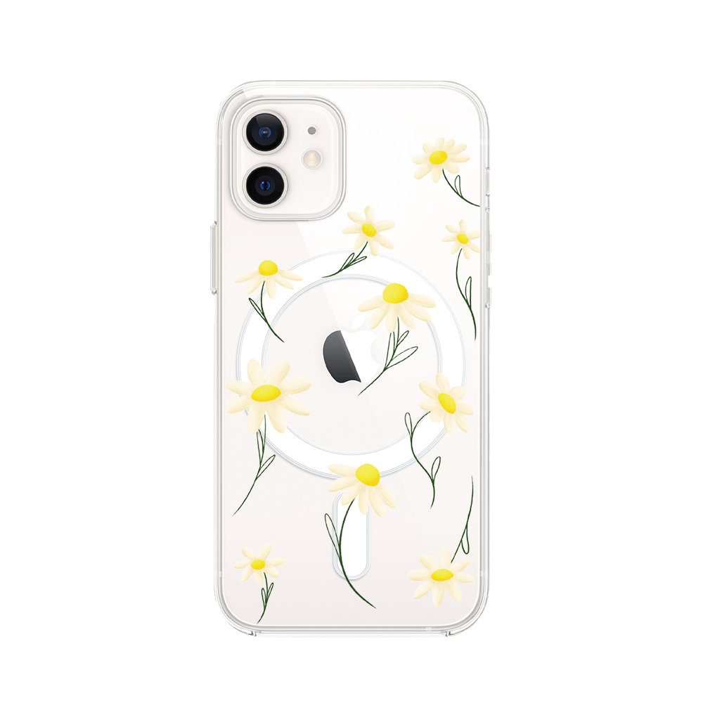 Etui do iPhone 12 Mini z MagSafe przeźroczyste, silikonowe Flexi, stokrotki