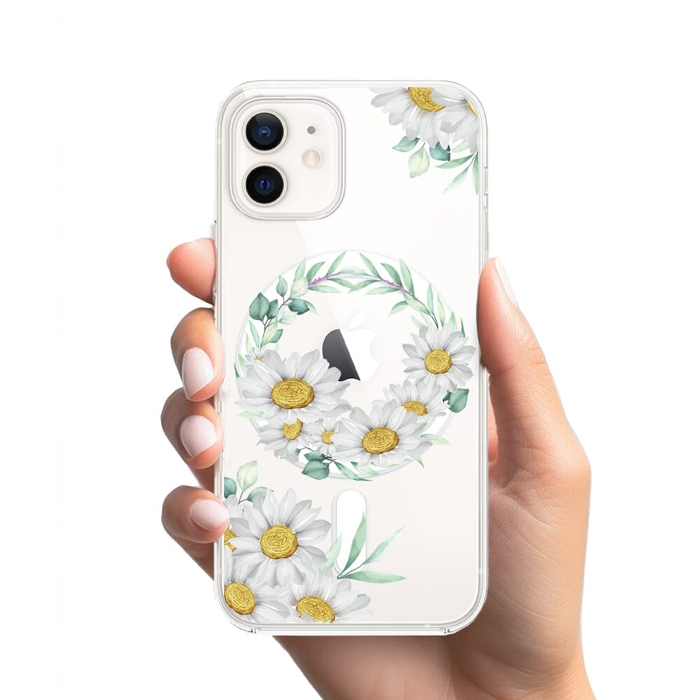 Etui do iPhone 12 Mini z MagSafe przeźroczyste, silikonowe Flexi, wianek stokrotek
