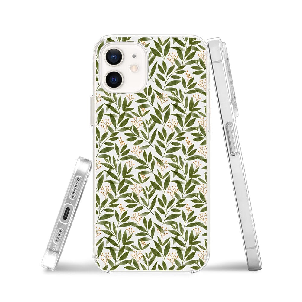 Etui do iPhone 12 Mini z MagSafe przeźroczyste, silikonowe Flexi, zielone gałązki