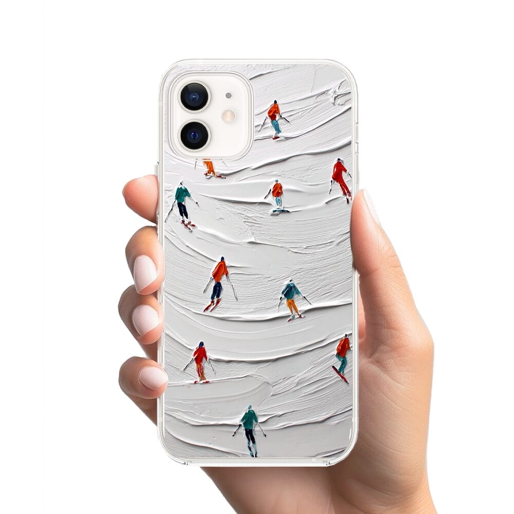 Etui do iPhone 12 Mini z MagSafe przeźroczyste, silikonowe Flexi, Zimowa magia, Narciarski obraz