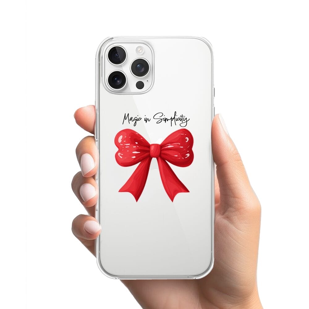 Etui do iPhone 12 Pro Max przeźroczyste, silikonowe Flexi, Przytulne święta, Czerwona kokarda