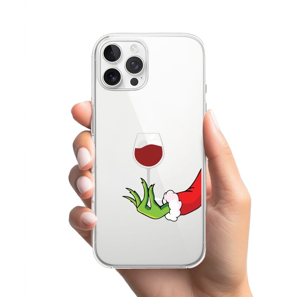 Etui do iPhone 12 Pro Max przeźroczyste, silikonowe Flexi, Zielony psotnik z lampką wina
