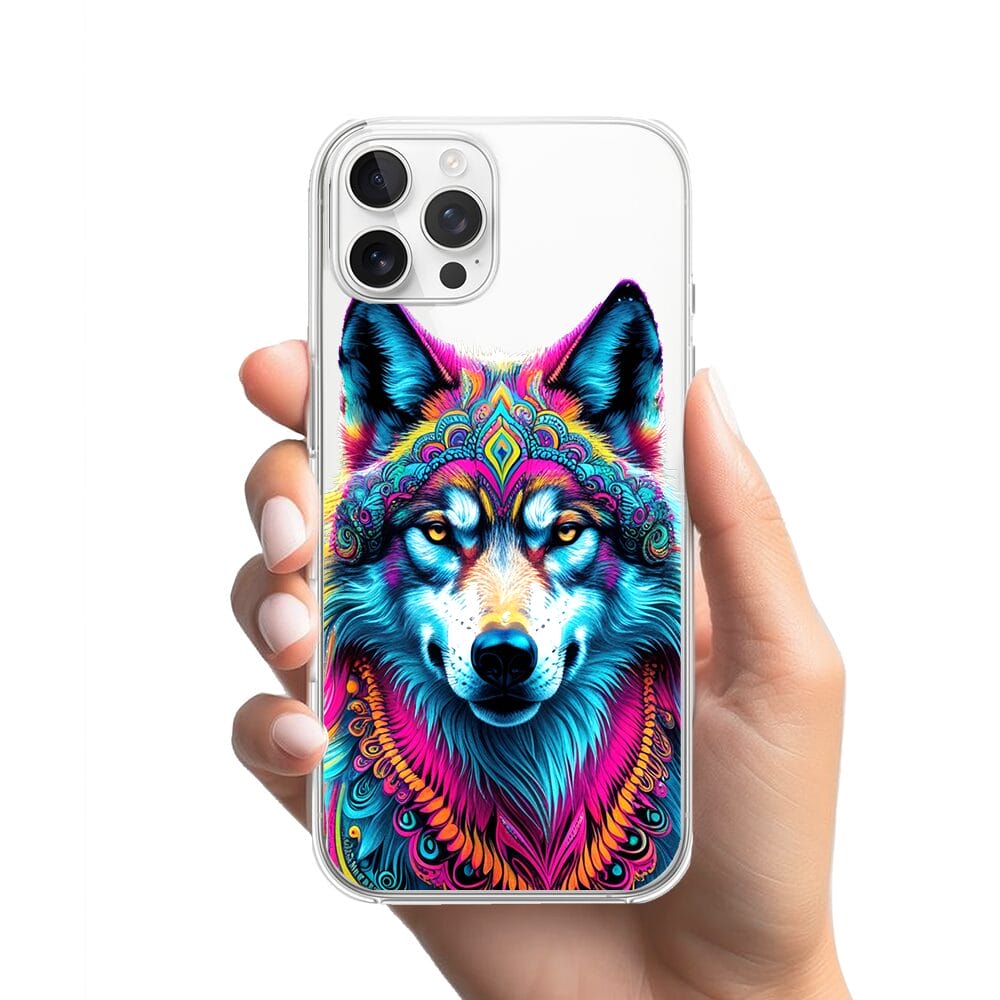 Etui do iPhone 12 Pro Max z MagSafe przeźroczyste, silikonowe Flexi, Dzika Mandala, Wilk