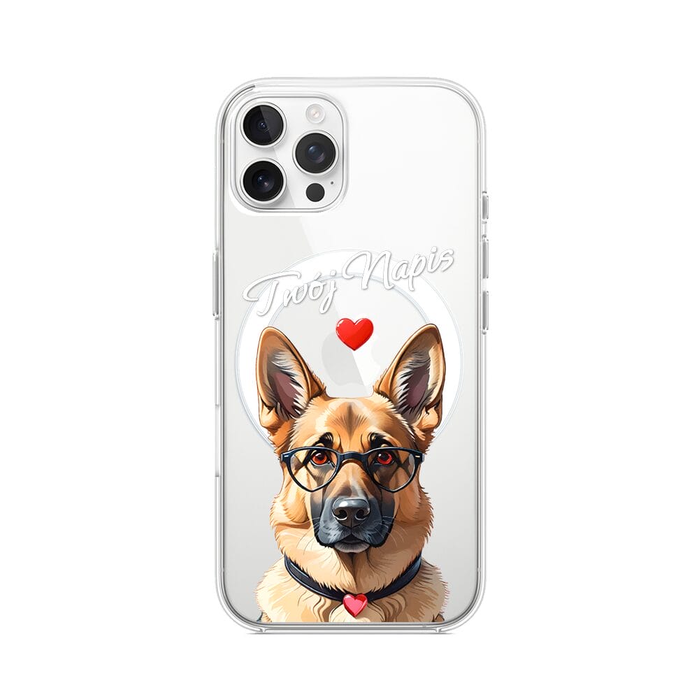 Etui do iPhone 12 Pro Max z MagSafe przeźroczyste, silikonowe Flexi, Puppy Love, pies rasy Owczarek Niemiecki
