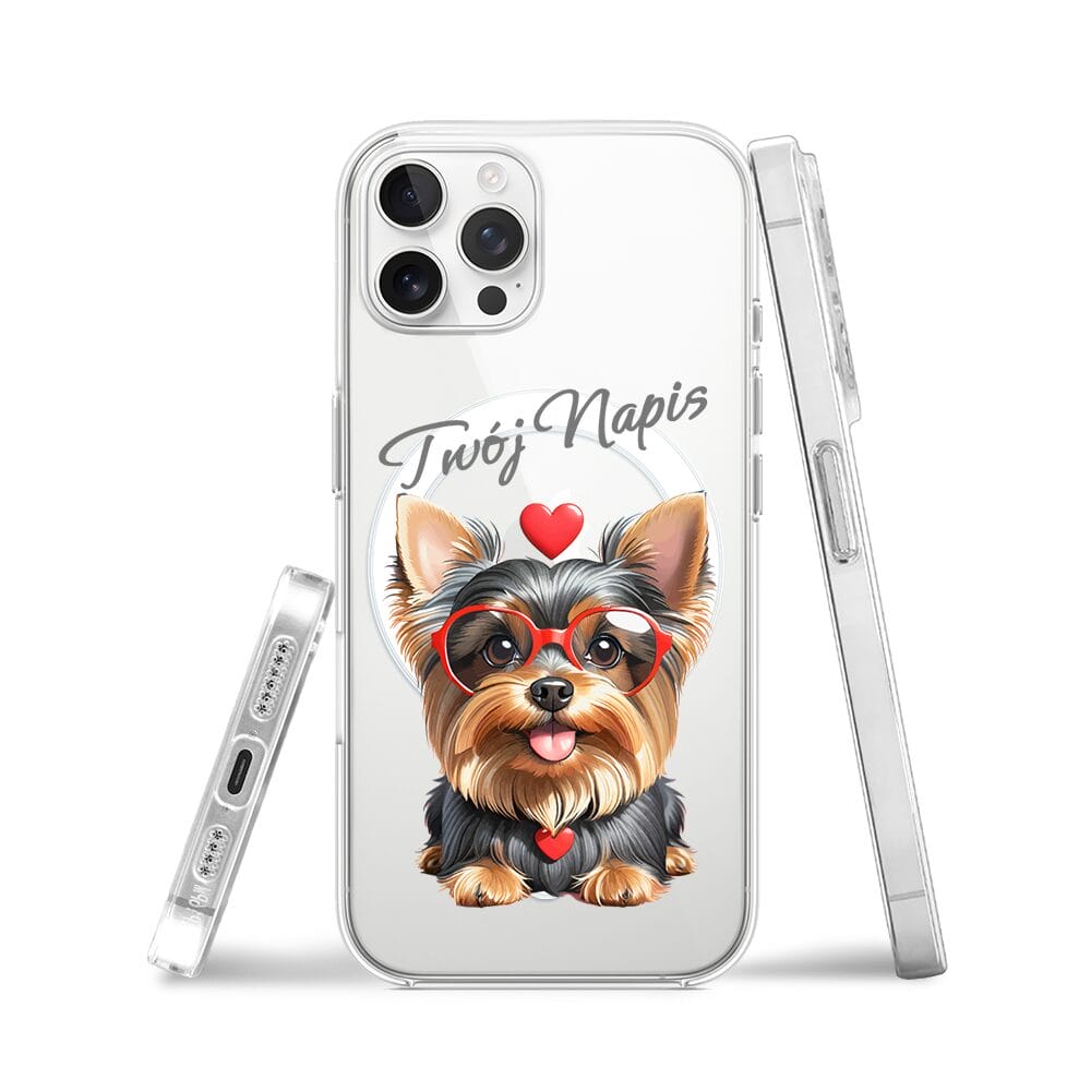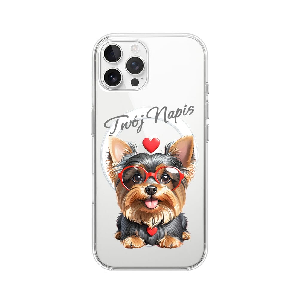 Etui do iPhone 12 Pro Max z MagSafe przeźroczyste, silikonowe Flexi, Puppy Love, pies rasy York