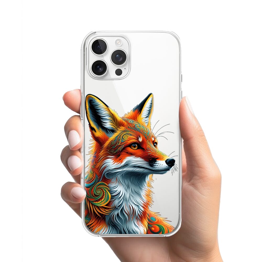 Etui do iPhone 12 Pro przeźroczyste, silikonowe Flexi, Dzika Mandala, Twarz lisa