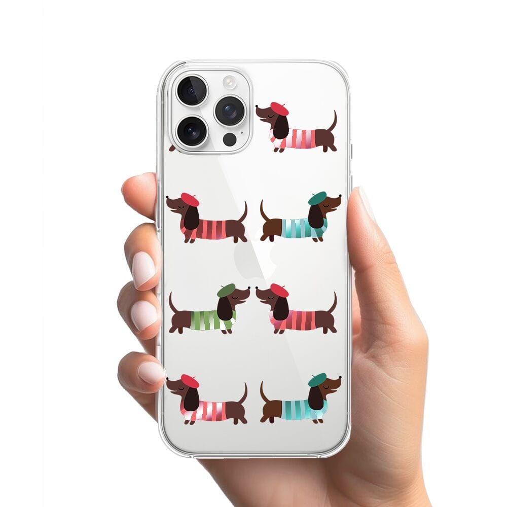 Etui do iPhone 12 Pro przeźroczyste, silikonowe Flexi, jamnik w Paryżu