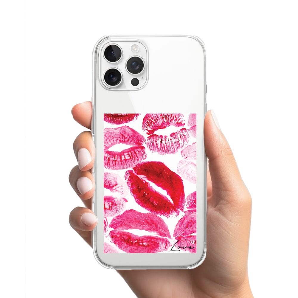 Etui do iPhone 12 Pro przeźroczyste, silikonowe Flexi, pocałunki z napisem „love”