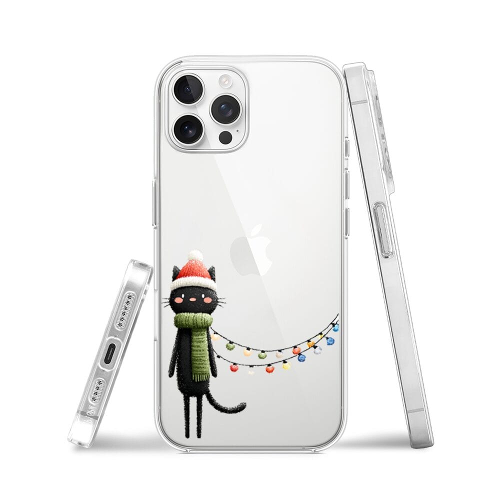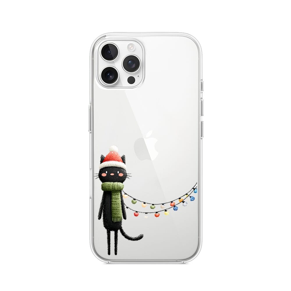 Etui do iPhone 12 Pro przeźroczyste, silikonowe Flexi, Przytulne święta, Kot przebrany za elfa