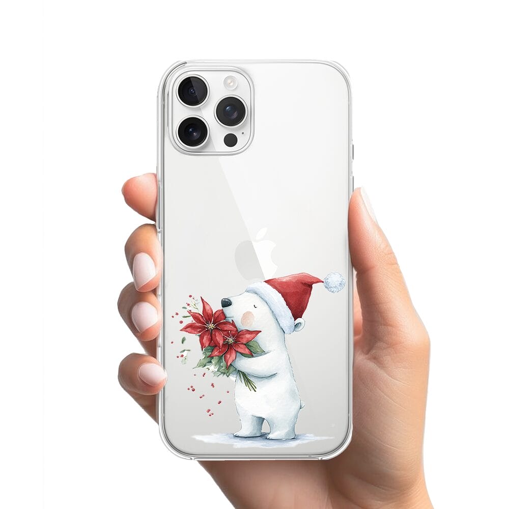 Etui do iPhone 12 Pro przeźroczyste, silikonowe Flexi, Przytulne święta, Miś świąteczny