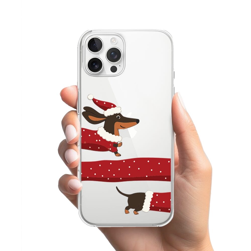 Etui do iPhone 12 Pro przeźroczyste, silikonowe Flexi, Przytulne święta, świąteczny jamnik