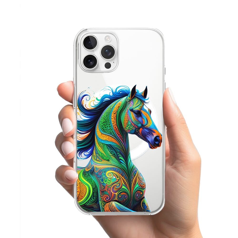 Etui do iPhone 12 Pro z MagSafe przeźroczyste, silikonowe Flexi, Dzika Mandala, Koń