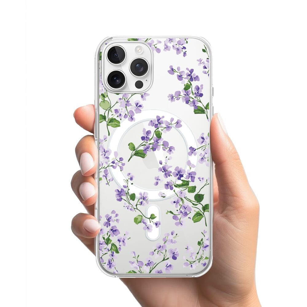 Etui do iPhone 12 Pro z MagSafe przeźroczyste, silikonowe Flexi, Fioletowe Bratki