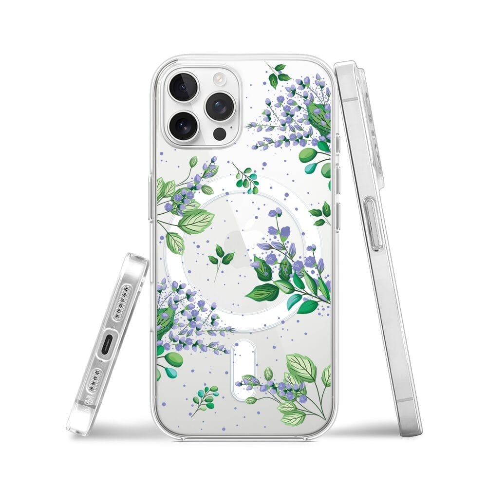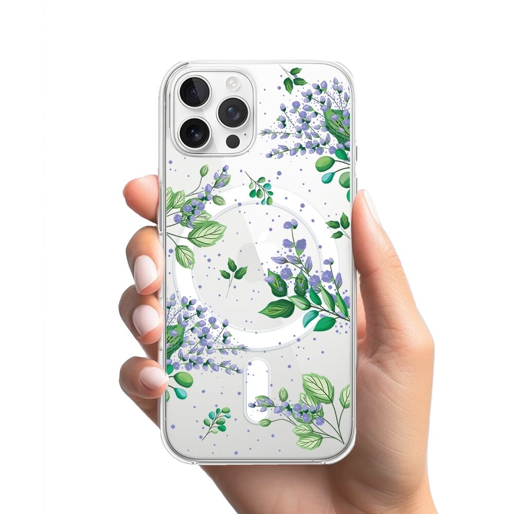Etui do iPhone 12 Pro z MagSafe przeźroczyste, silikonowe Flexi, fioletowe kwiatki
