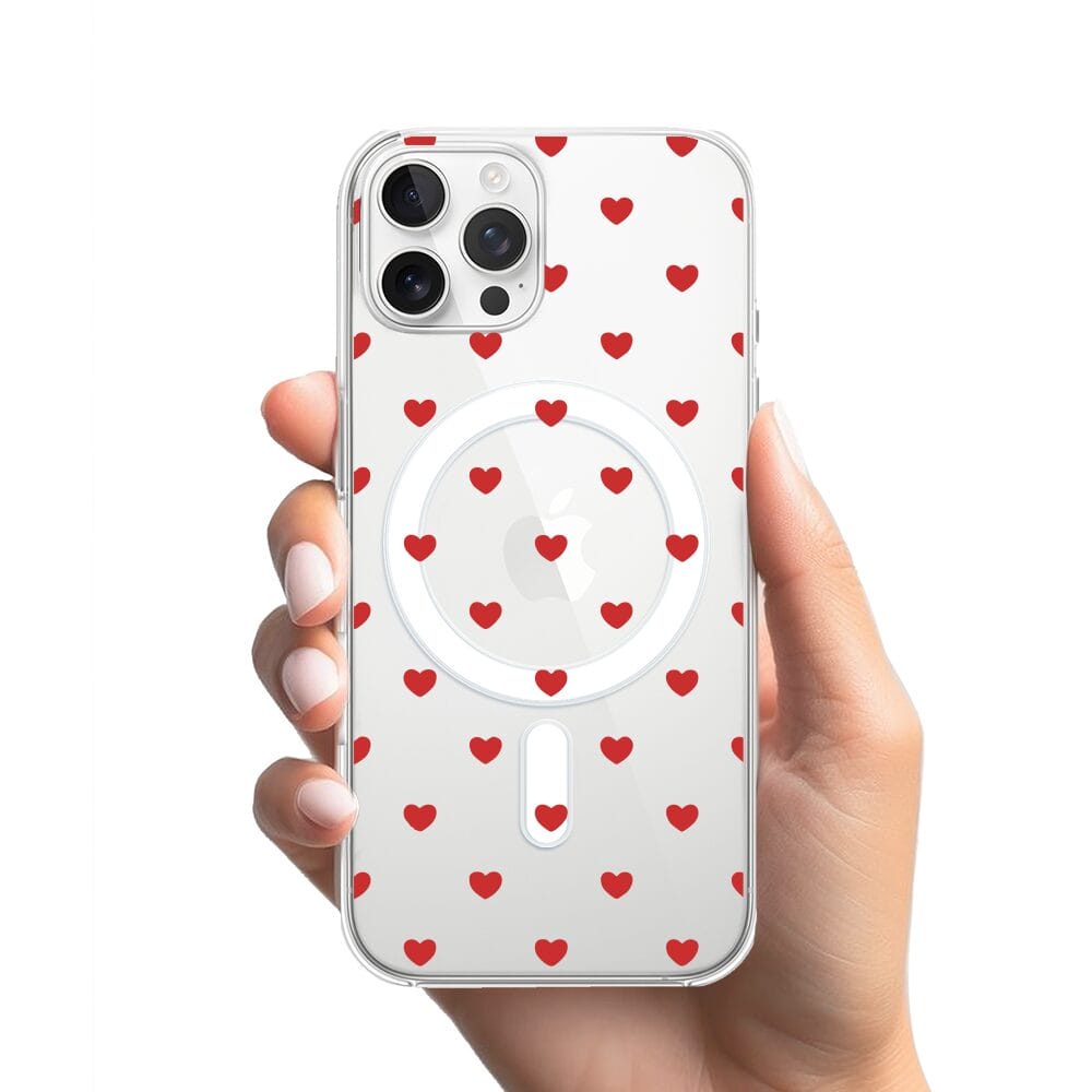 Etui do iPhone 12 Pro z MagSafe przeźroczyste, silikonowe Flexi, Mini Patterns, Serduszka