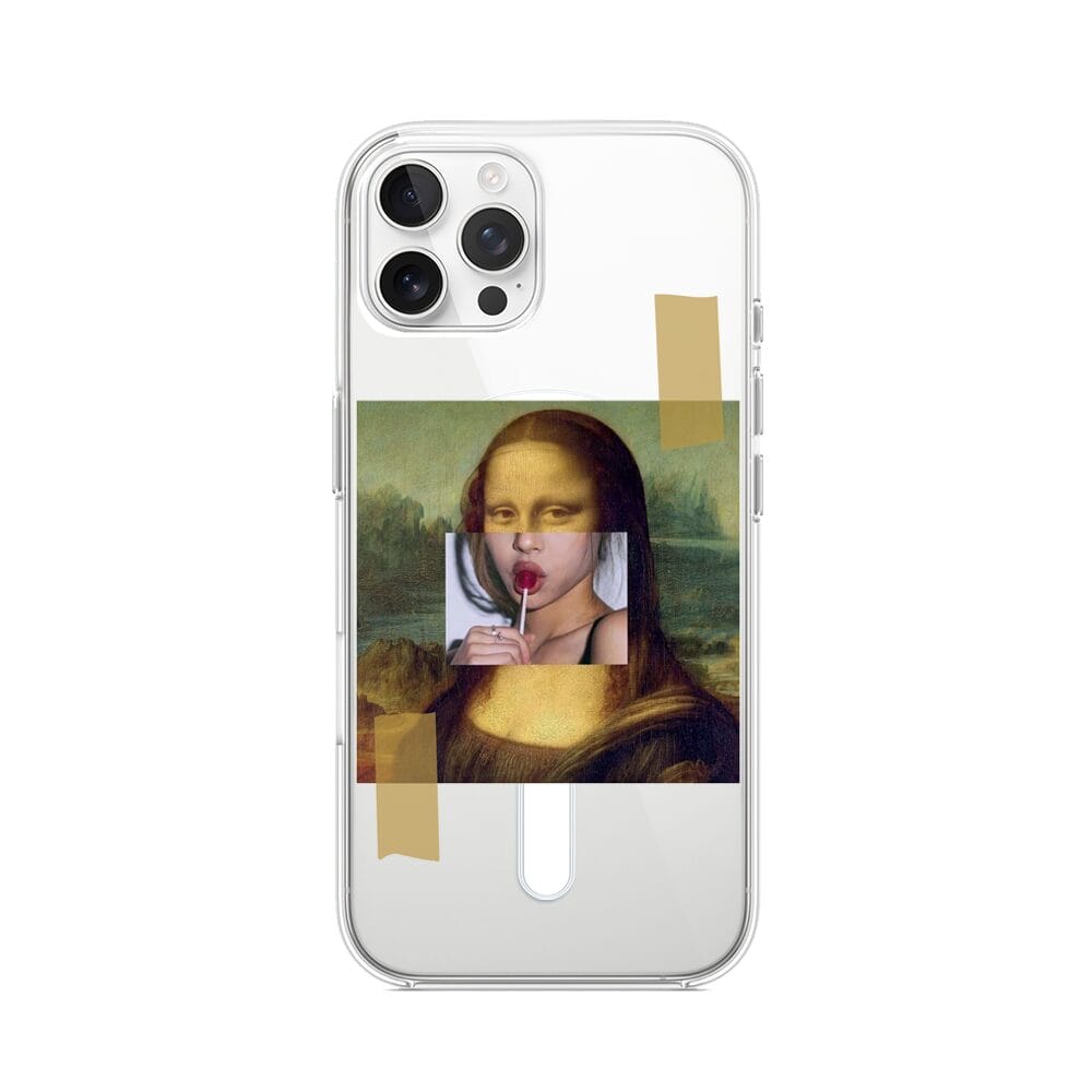 Etui do iPhone 12 Pro z MagSafe przeźroczyste, silikonowe Flexi, Mona Lisa z lizakiem