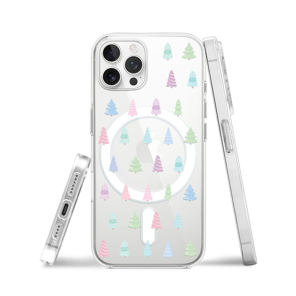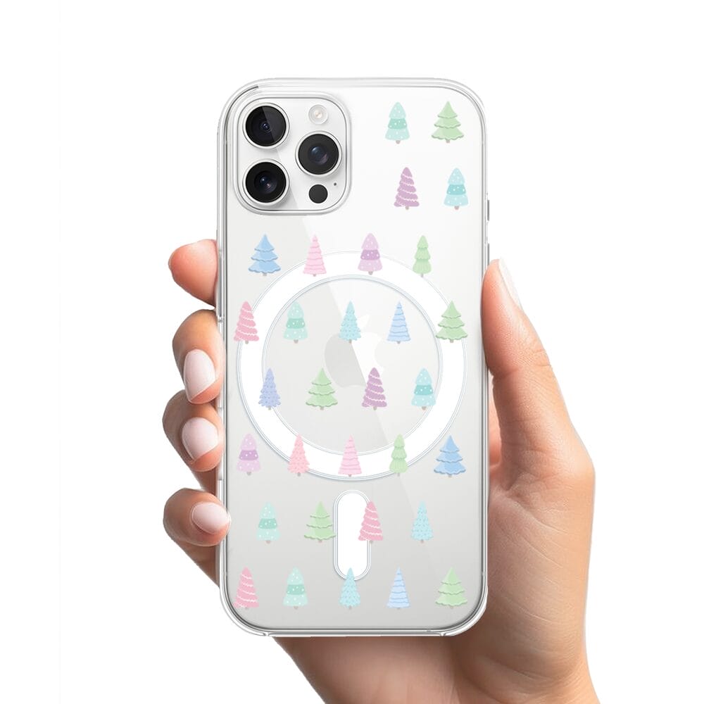 Etui do iPhone 12 Pro z MagSafe przeźroczyste, silikonowe Flexi, Pastelowe choinki