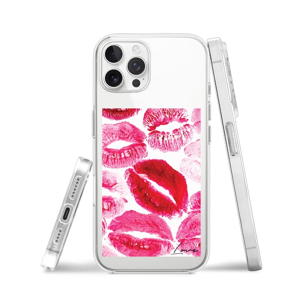Etui do iPhone 12 Pro z MagSafe przeźroczyste, silikonowe Flexi, pocałunki z napisem „love”