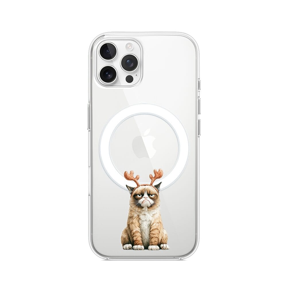 Etui do iPhone 12 Pro z MagSafe przeźroczyste, silikonowe Flexi, Przytulne święta, Kot który nie chciał być reniferem