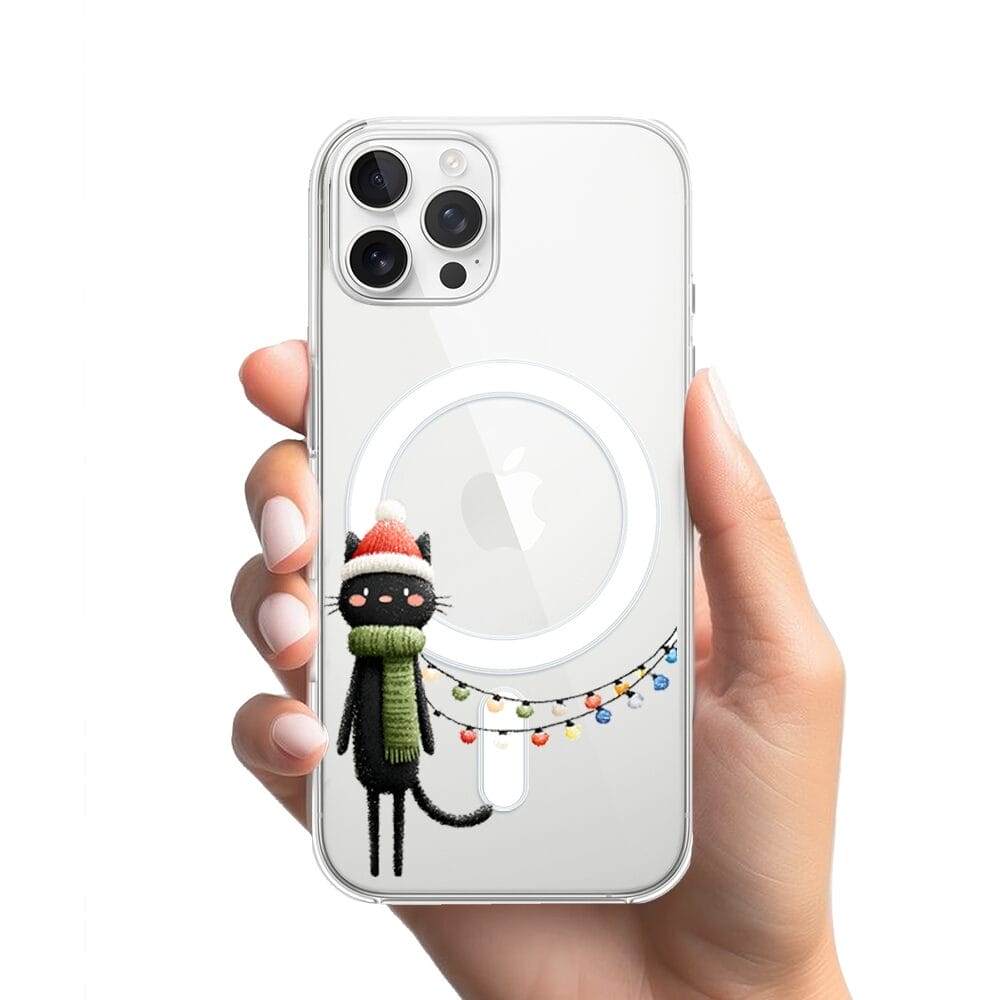 Etui do iPhone 12 Pro z MagSafe przeźroczyste, silikonowe Flexi, Przytulne święta, Kot przebrany za elfa