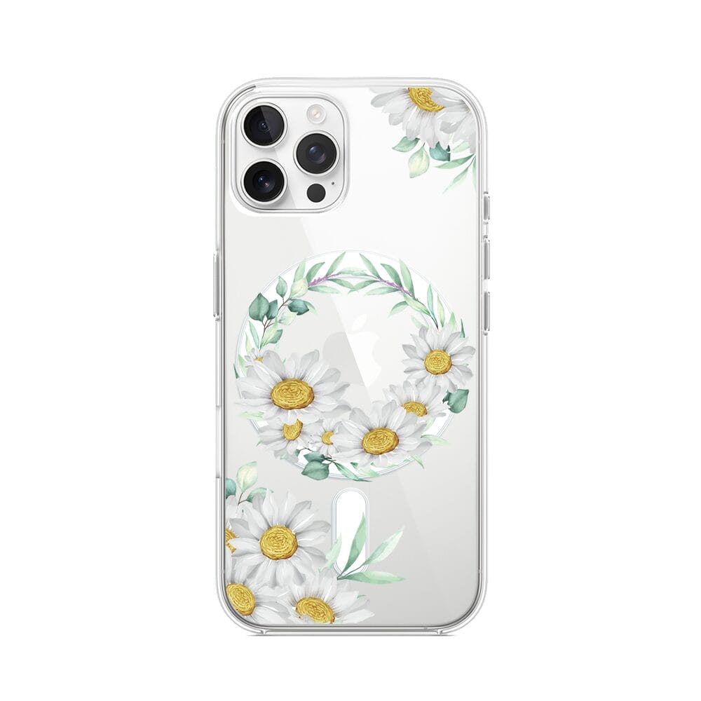 Etui do iPhone 12 Pro z MagSafe przeźroczyste, silikonowe Flexi, wianek stokrotek