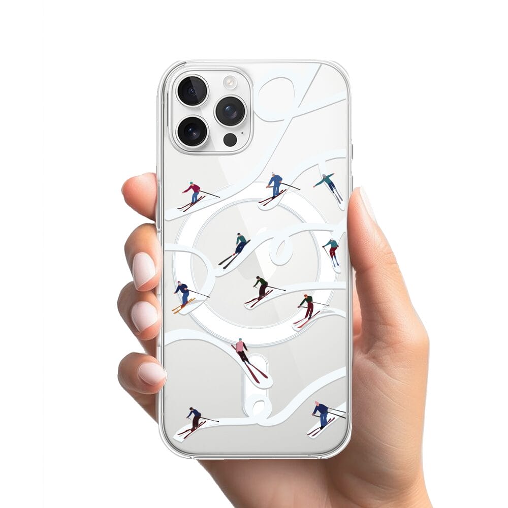 Etui do iPhone 12 Pro z MagSafe przeźroczyste, silikonowe Flexi, Zimowa magia, Narciarskie wiraże