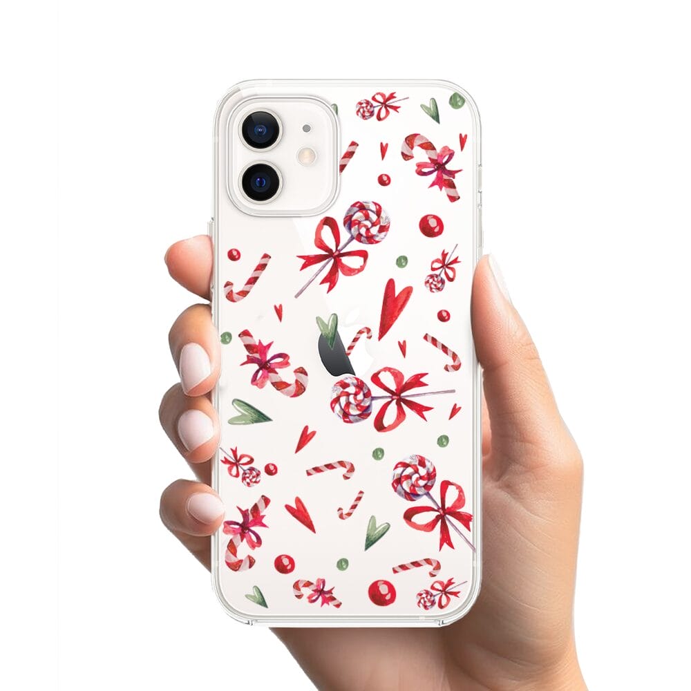 Etui do iPhone 12 przeźroczyste, silikonowe Flexi, Cukierki świąteczne